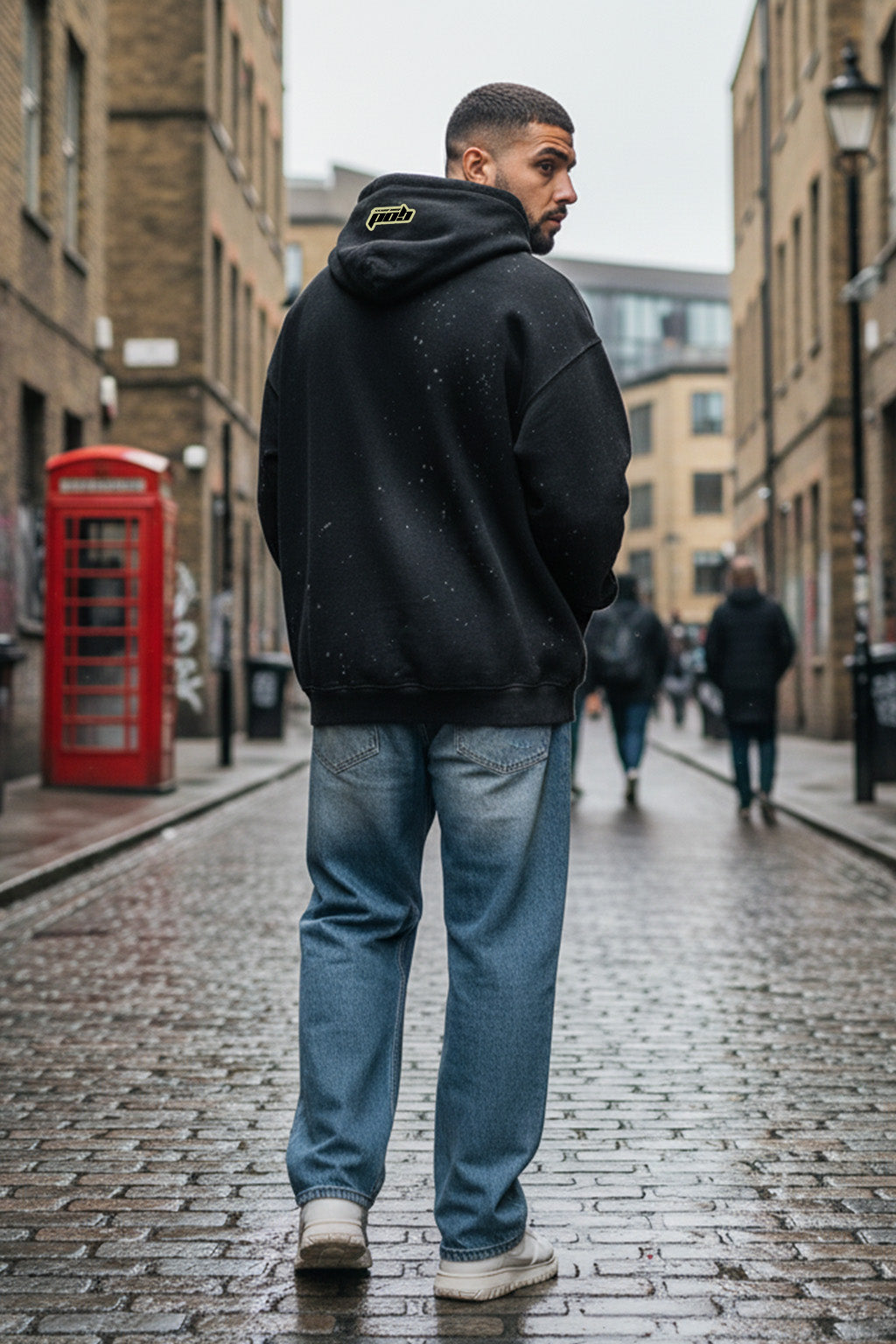 A trendy street-style hoodie featuring a unique design with splatter ink effects and irregular fading for a distressed, edgy look. The hoodie showcases artistic details such as frayed edges, shredded holes, and a worn-out aesthetic, giving it a bold and rebellious vibe. Made with 52% cotton and 48% polyester, it offers both comfort and durability. Plus, it comes with a fleece lining to keep you warm and stylish during colder days. A perfect blend of fashion and attitude!